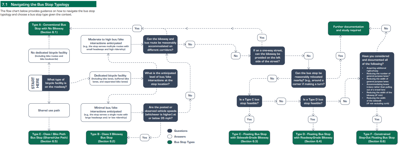 How to handle constraints and tradeoffs is one of the central topics of TransLink’s Design Guide for Bus Stops Adjacent to Cycling Infrastructure, which focuses on Vancouver and broader British Columbia but contains concepts that can be applied in a wide variety of North American contexts. Toole Design also led an Accessible Design Guide for Montgomery County, Maryland, which includes floating bus stop design guidance based on extensive engagement through a pilot project study.