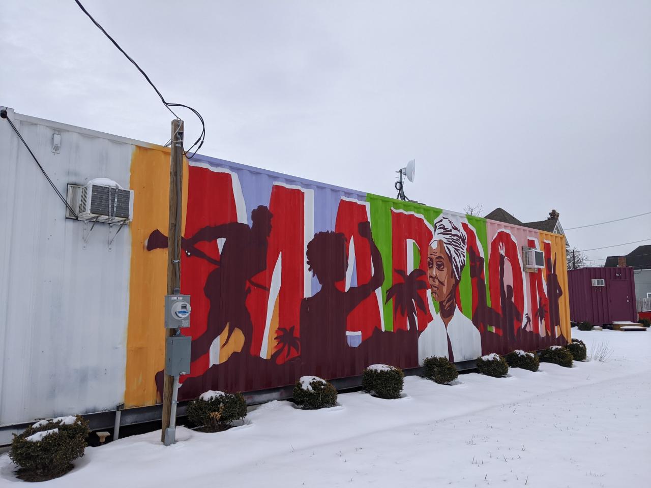 During regular visits to Mount Vernon Avenue, we noticed the significant role that art plays along the corridor. Like in many neighborhoods, public art takes the form of murals, sculpture, architecture, stained glass, and church bells. But Bronzeville’s art also decorates parking lots, shipping containers, shop doors, and the street itself. It covers the sides of two-story homes, garage doors, and fences. It decorates a telephone pole in memory of a 16-year-old boy killed by police. It is set in the very stone of the architecture remembering beloved women. This observation led engineer Mariel Colman to coordinate with Maroon Arts Group to incorporate public art into our transportation infrastructure recommendations.