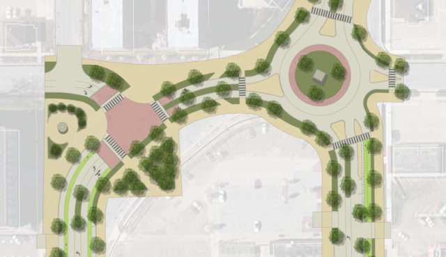 Toole Design worked with the City of South Bend to envision its entire downtown as a human-scale network of pedestrian- and cyclist-friendly streets that maximizes social and economic exchange as well as private investment. The result was the South Bend Smart Streets Initiative, a street, trail, and open space plan that revitalized the area. The plan included restoring all of the one-way streets back to two-way, using roundabouts to reassign traffic loads, changing all the streets into Complete Streets, and developing a waterfront park and plaza plan that is integrated with the bicycle and street plans.