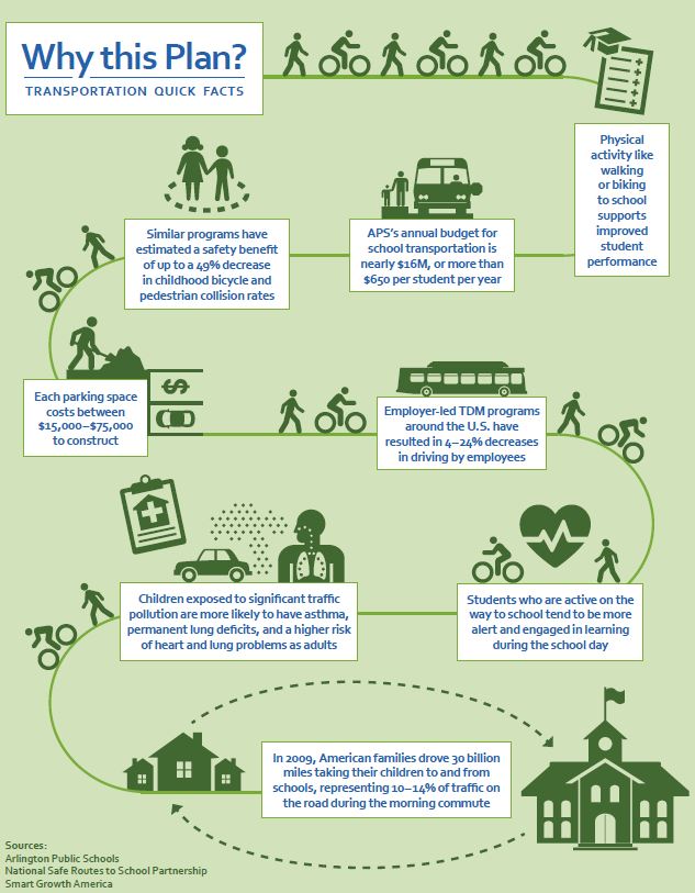 Arlington Public Schools wanted to increase bicycling, walking, and carpooling by school families and staff throughout the community. In response, Toole Design combined Transportation Demand Management (TDM) and Safe Routes to School (SRTS) strategies into a first-of-its-kind, actionable plan for the school system.
