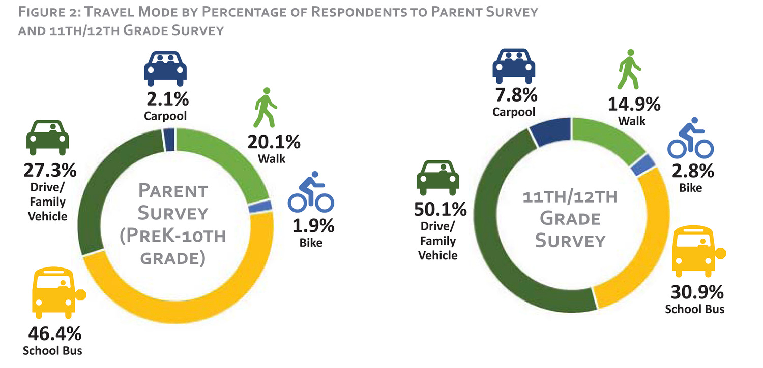With the countywide plan serving as our guide, we developed a tailored suite of program, policy, and engineering solutions for each school site to improve transportation. Survey responses from students, parents, and staff across the 41 sites helped to further inform actionable plans throughout the school system.